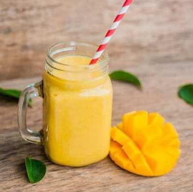 5. Pour into a glass, garnish with a mango slice, and enjoy!